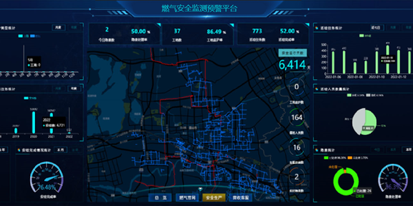 對相鄰地下空間、燃氣管網(wǎng)、燃氣閥門井、燃氣管道外部擾動風險區(qū)域/管段進行管網(wǎng)壓力、流量,閥門井可燃氣體泄露,相鄰地下空間可燃氣體,燃氣管道外部擾動風險區(qū)域/管段振動和井蓋異動等指標進行實時監(jiān)測,同時接入視頻圖像,實現(xiàn)動態(tài)安全監(jiān)管,構建燃氣管網(wǎng)綜合管理的動態(tài)監(jiān)測網(wǎng)絡,保證整個城市供氣穩(wěn)定安全運行。
